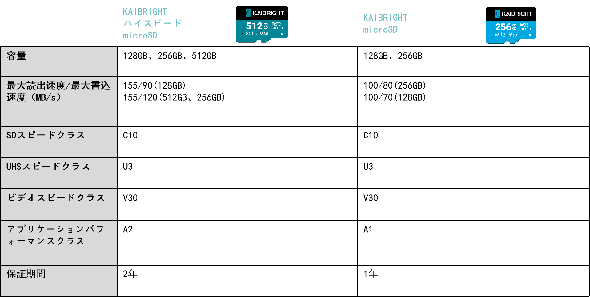 KAIBRIGHT micro SDメモリカード128G/256G